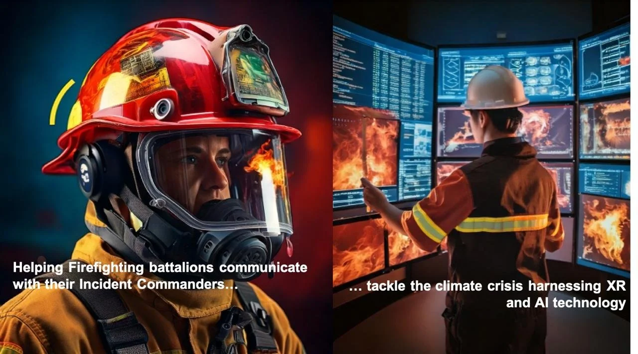 Alive XR developed an immersive communication system to support firefighters and Incident Commanders in extreme conditions like zero visibility, toxic environments, and high ambient noise. Traditional radio systems often fail in these high-stress scenarios, causing delays and miscommunication. This solution integrates real-time sensor data, GPS tracking, and AI-powered fire spread prediction to enhance situational awareness without overwhelming users. The voice-controlled, hands-free interface works with broadband and legacy radio systems, ensuring seamless communication. Rigorous usability testing in simulated disasters optimized cognitive load and effectiveness. By bridging cutting-edge technology with first responders' needs, this system improves safety and enables faster decisions.